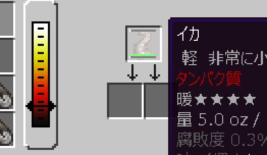 TFC 2016/02/25 ちょっとうれしいことが2件ほど やべぇタンパク源がねぇ!と気づいたのは鉛採掘場に戻ってほどなくしたころ。 持ってくるのを忘れたようです、ほかの果物や穀物は持って来たんですが。 ということで、イカ取りをしました。どれぐらいぶりだろう。 SmartMovingをそういえばちょっと前に入れていたので、まぁまぁ泳ぐのも早くなり、そこまで苦じゃないだろう!と意気込んでみたもの・・・。 話にならんww 一匹0.5ozとか?アホかと すいませんでした・・・。 さすがにこれでは消費のほうが早い、ということでキライな(マイクラバニラ時代から)釣りをすることに。 クモもちゃちゃっとやっつけて 魚ウマー!一瞬ですよ一瞬こんなもん。 まぁ、お遊びはその辺にしておいて。 ちょっといきなりですが、冒険に出ました。 そう、実は黒曜石もっといっぱいほしいんです。 そう、あれのためにね。 40個は少なくともほしいかな~? 下のほうは割とマグマが多く、水に隣接してるとこも多いのでなんとかなるかなと。 そうでもなかったです、5.6個は手に入りましたが。 こんどちゃんと準備して向かいます、別の場所。 もう一ついいことがあったのは・・・。 画面下の怪しげな色の・・・マグマじゃないとは思うんだけどなにかな?と気になったわけで行ってみました。 なつかし~~! むかーしにカオリン見つけて掘ったところでした。 すっごい雑に掘られててちょっとニヤっとしたり。 あとは、しつこいほど鉛見たり 石ブロックさんチーっす!みたいな状態だったり。 そんなこんなであんまり上積み無しで小冒険は終わりました。 そろそろ鉛切り上げて、すぐそばにある亜鉛、黒鉛(どちらもけっこう在庫アリ)あたりを採掘しましょうかね。 [0回]