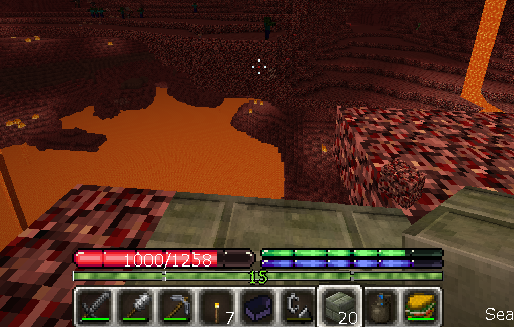 TFC 2016/05/17 再起動の繰り返し ネザーいいんだけど、やはり帰ってきたときのクラッシュが面倒ですね。 でも、我慢ですww ひとまず浮島に出てしまった以上、橋を架けなくてはなりません。 矢でぴょこん、と落とされるのが怖いですが・・・こんな時の黒曜石ボート。 コレのおかげで万が一落ちても、船に乗れば安心です。 なんせ火炎耐性がつくので。 まぁ、焦らず乗れればの話ですけどねww そして、すっかり忘れてましたが・・・ 鋼フル装備。今回剣も結局作りました。 ゾンビ一撃です、こりゃ頼もしい。 と、話は戻りますが・・・特に何も面白いことはなくレンガで作れました。 もちろんゲート近辺も間違ってツルハシで壊しちゃわないように固めます。 そして、少しあたりをうろうろするわけです。 もちろんネザー水晶も集めます。EXPたまりますからね。 もちろん狙いは要塞なんですが・・・。 ありました、拡大でやっと見える距離、結構遠いですが、いずれお邪魔しようと思います。 あとは、明かりを採ったり 結構敵と戦ってもうLv30になってしまいました。うまし!! ひとまずのやりたいことは終わったので、帰宅です。 せっかくなので、レッドストーンランプでカッコよく。 そのままだとなんかダサいですからね、カボランタンがそれであまり使わないように。 そして、いい気になったのでここの屋根でも作ろうかな、と。 メインではありますからね、この部屋。 迷いましたが、木っぽい色もよさげな礫岩にしました。 まだ、途中ではありますが、部屋の中から覗くとなかなかいい感じではないですか! 玄関周りの屋根のつなぎをどうするかは、後で考えることにします。 今夜は以上。 [1回]