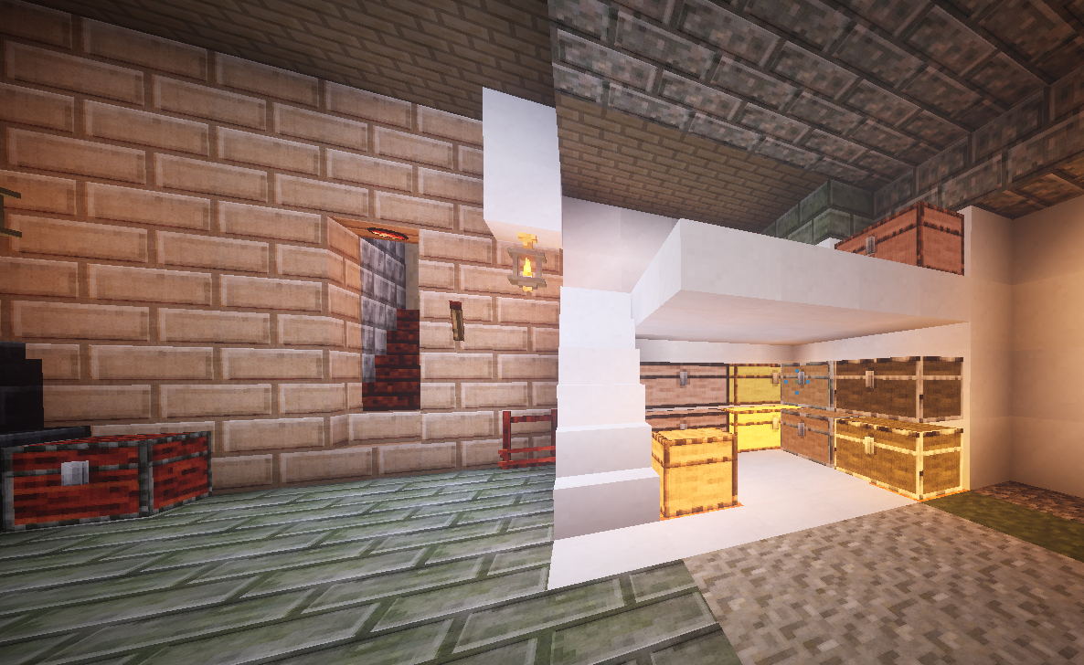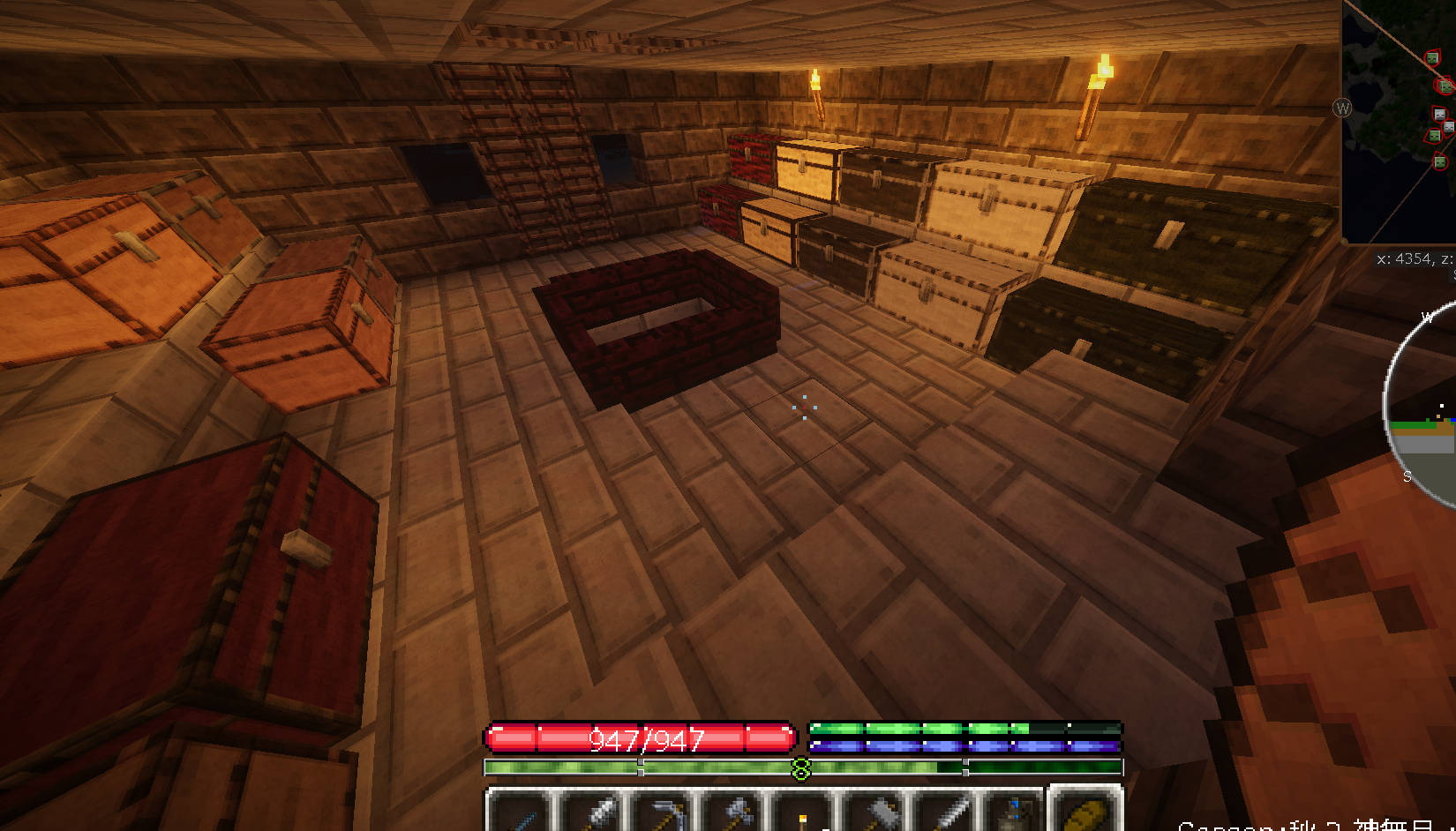 TFC 2016/04/26 倉庫、など さすがに岩石が収集つかなくバラバラにあちこちあって困ったので、早めに倉庫作りました。 一階の広いスペース。 ふんだんにあるアラバスターにて製作。 なるべくチェストの色と岩石の色がマッチするように作りました(途中だけど)。 そして、依然雨ざらしのベッド。 どうするかなぁ・・・。 あと、試しに鉄焼いてみました。 無事、動いています。 [2回]